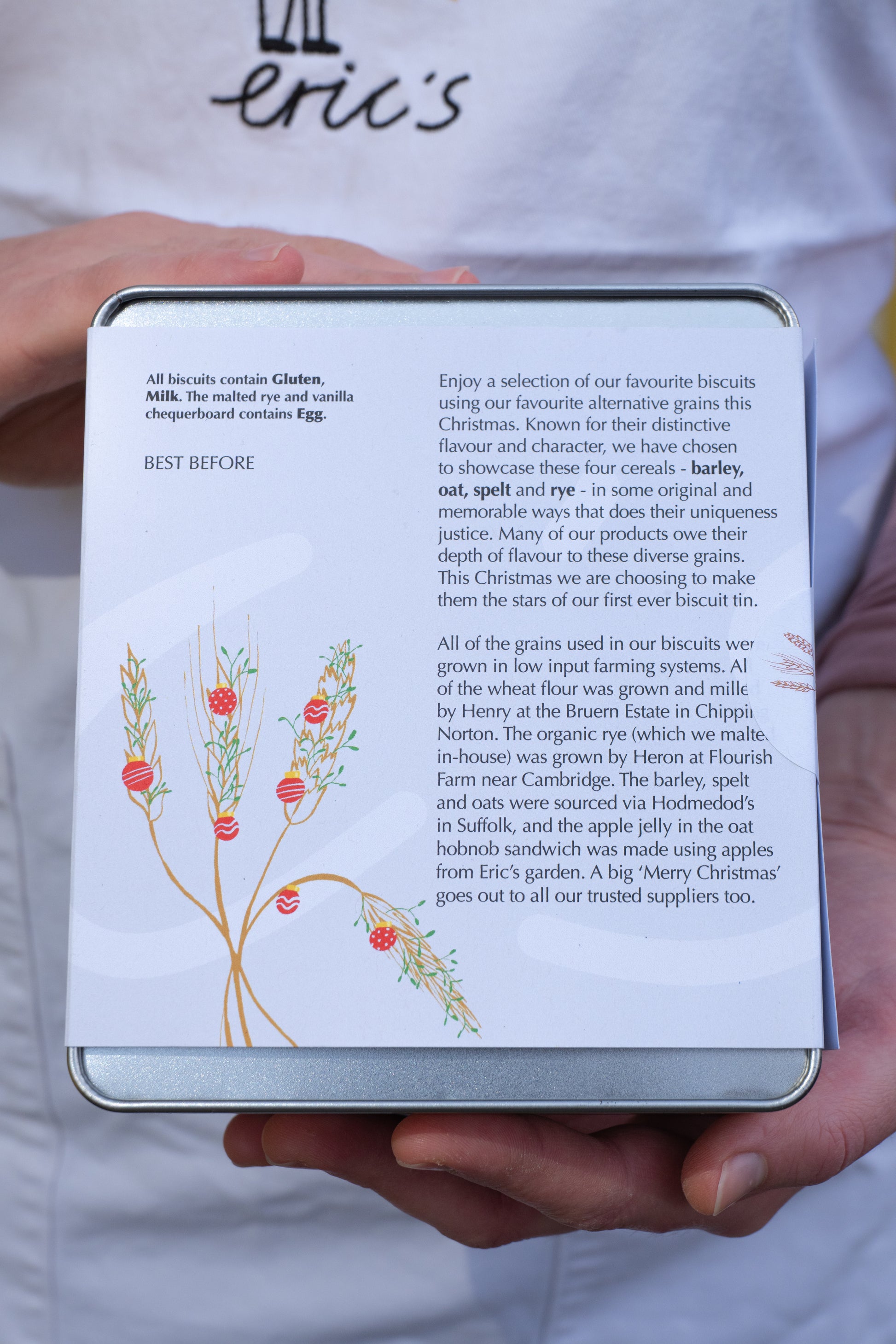 Each biscuit tin contains a selection of delicious biscuits made using our most favourite alternative grains. Known for their distinctive flavour and character, we've chosen to showcase these four cereals - barley, spelt, rye and oat - in some original and memorable ways that does their uniqueness justice.